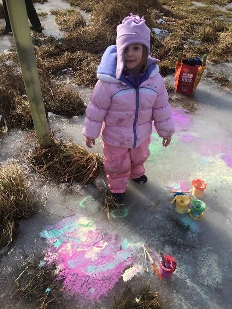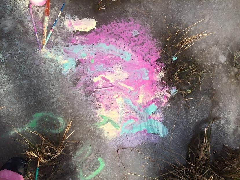 - This is beautiful work! Tempra paints on a giant frozen ice puddle!