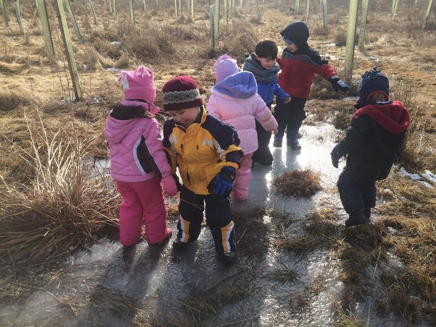 - We found this giant frozen puddle at the bottom of the meadow! It was the highlight of our day!